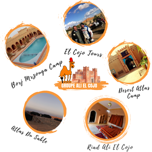 Groupe Ali Elcojo brings together Riad Ali Elcojo and three exceptional luxury desert camps, offering a complete and authentic Moroccan desert experience. The group is known for its blend of traditional Moroccan hospitality, refined comfort, and breathtaking Saharan landscapes. Riad Ali Elcojo serves as a peaceful retreat with elegant, traditionally designed rooms and stunning desert views, perfect for relaxing before or after a desert adventure. The three luxury camps of the group provide unique desert stays, each offering spacious tents, high-end amenities, traditional Moroccan décor, private terraces, and panoramic views of the dunes. Whether guests seek tranquility, adventure, or cultural immersion, Groupe Ali Elcojo delivers a harmonious combination of luxury, authenticity, and unforgettable Sahara moments.