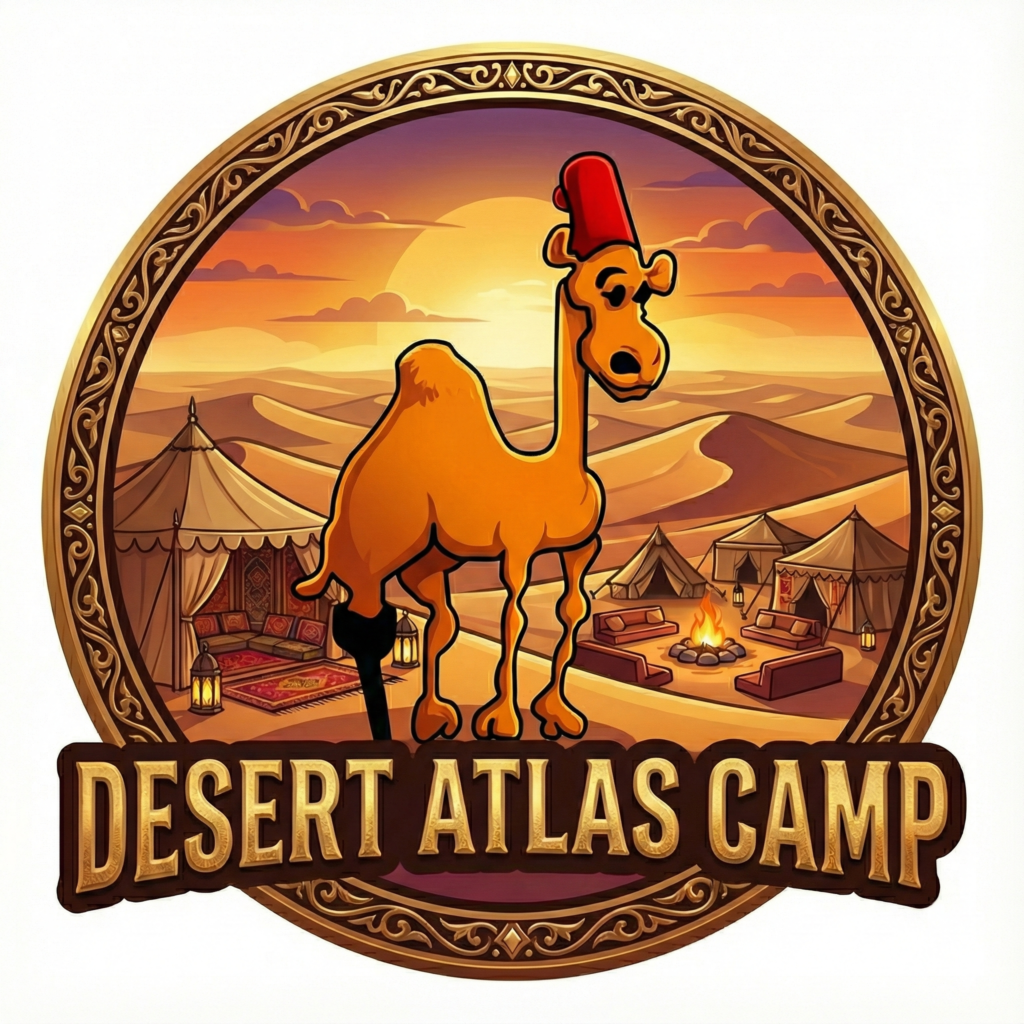 Desert Atlas Camp Luxury is an exclusive desert retreat located in the heart of the Merzouga dunes. Part of Groupe Ali Elcojo, the camp combines authentic Moroccan style with modern comfort, offering spacious luxury tents, private bathrooms, and stunning views of the golden Erg Chebbi. Guests enjoy a peaceful atmosphere, traditional hospitality, and unforgettable desert experiences such as camel trekking, sunset views, and nights under the stars.